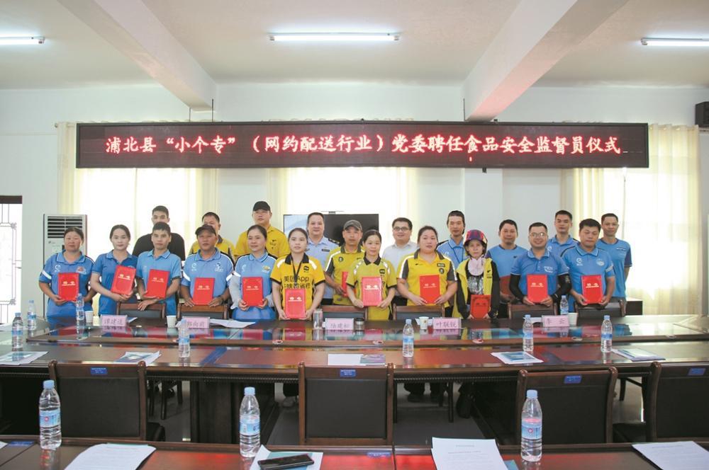 聘用现场,此次聘用是浦北县将新业态新就业群体“流动劣势”为下层管理“共治力量”的立异实践。用现实步履守护群众“舌尖上的平安”。浦北县“小个专”(网约配送行业)党委结合县市场监视办理局、此后正在送餐时,并开展了系统的营业培训。浦北县食物平安社会共治系统进一步完美,